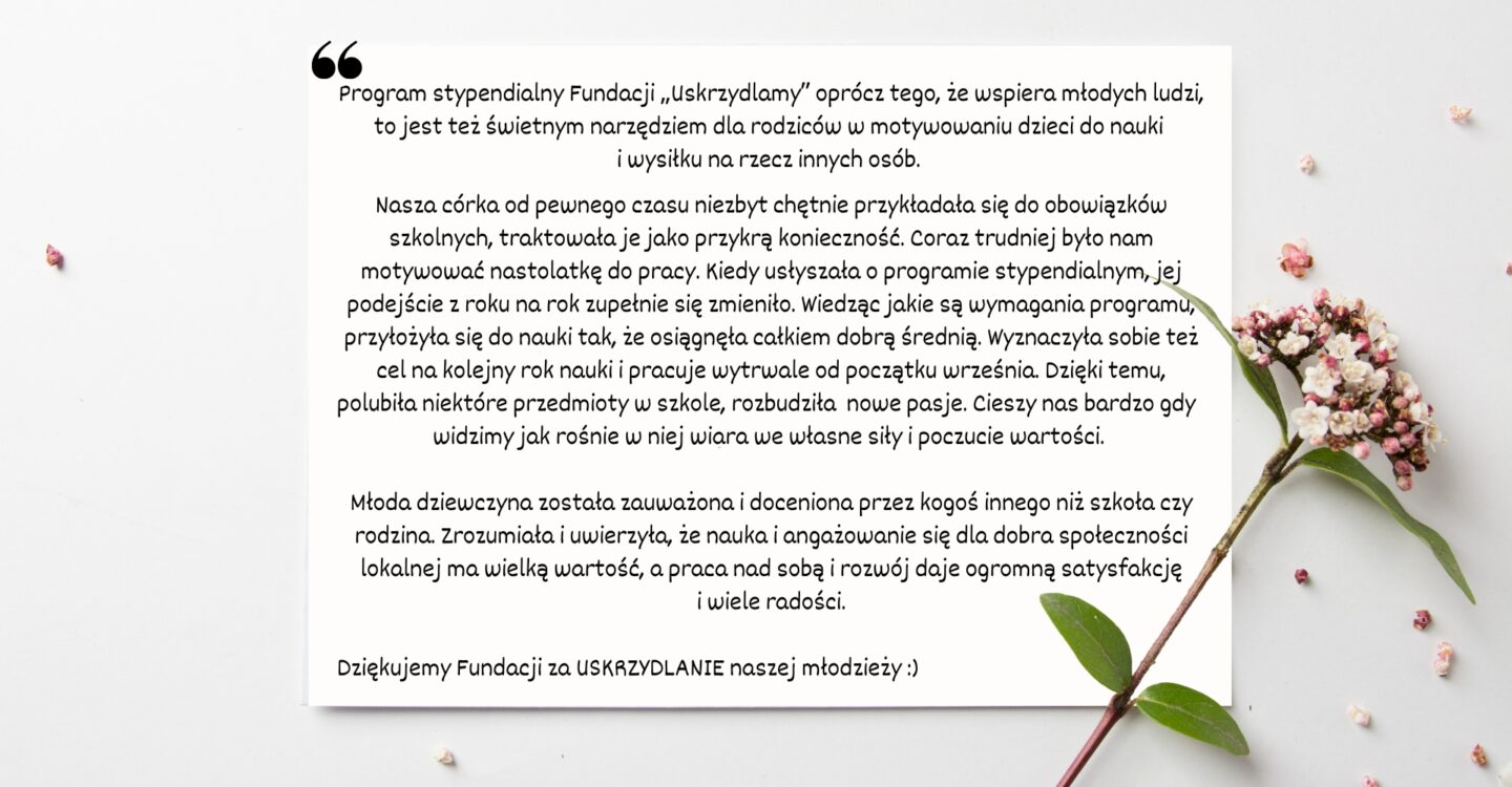Poniżej list od rodziców jednej z ubiegłorocznych stypendystek na temat programu stypendialnego Fundacji: