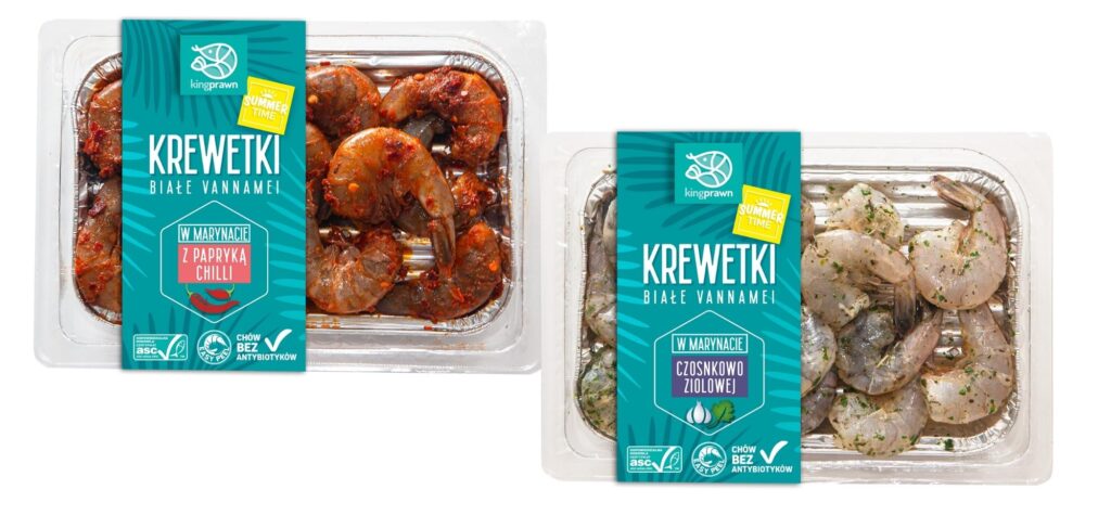 W sklepach ALDI i LIDL znajdziemy krewetki białe vannamei dostępne w dwóch marynatach ziołowej i chili.